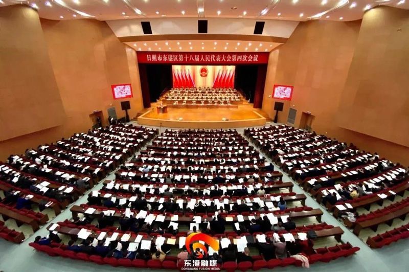 大會主席團常務主席王世波、王漢日、閆偉、陳文祥、隋紅臣、白建民、王諾、丁肇博在主席臺前排就座。王漢日宣布,東港區第十八屆人民代表大會第四次會議應到代表295人,實到270人,符合法定程序,大會開幕!全體起立,會場高唱國歌。